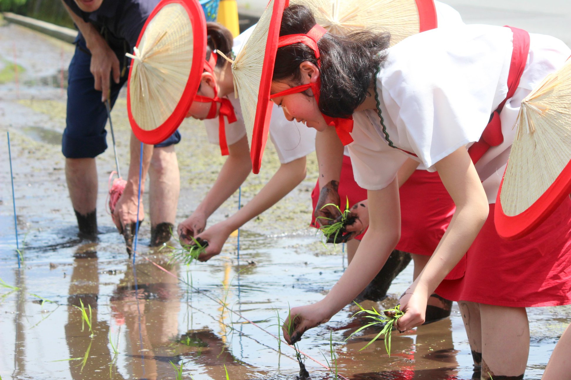 この田楽田植え祭りの「お田植え神事」を皮切りに、その年の田植えを一斉にスタートします。爽やかな初夏の日差しの下、雄大な富士山を眺めながら、笛や太鼓の音色に合わせて一緒に田植えをしてみませんか。